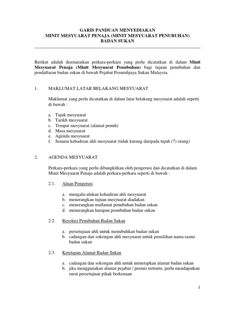 Garis Panduan Minit Mesyuarat Penaja Pdf