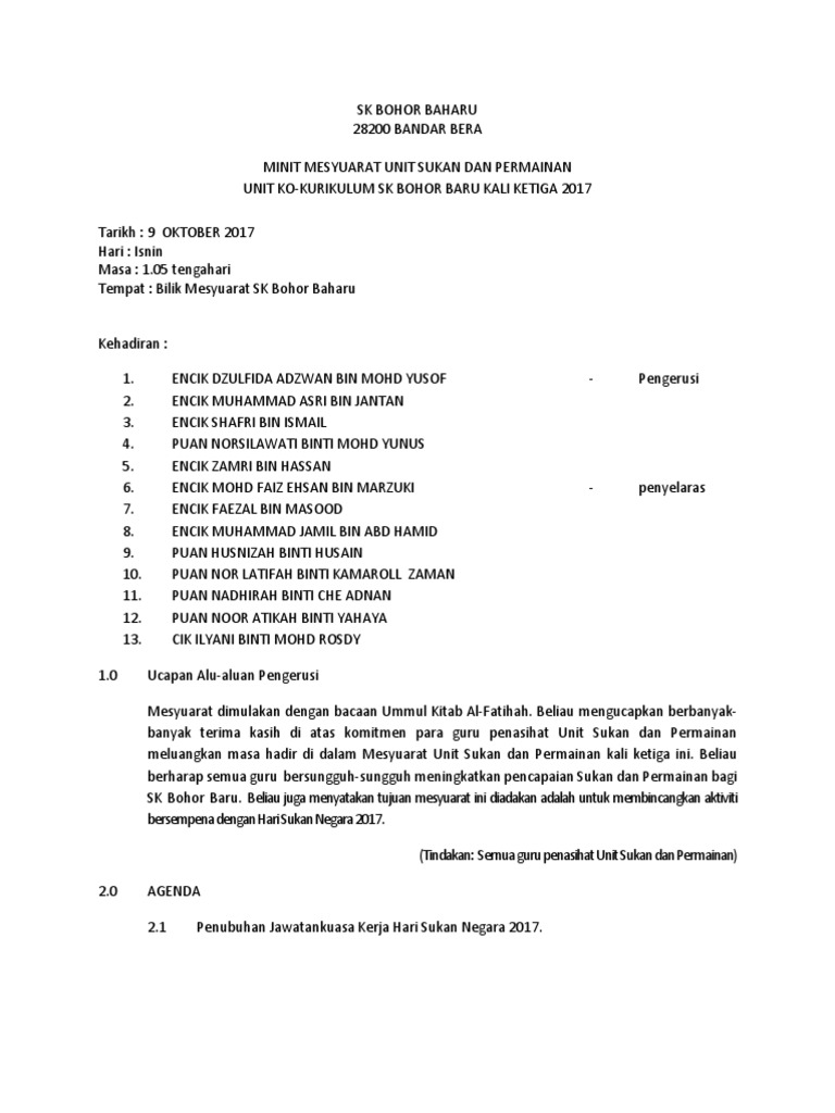 Minit Mesyuarat Sukan Dan Permainan Kali Ke3 Pdf