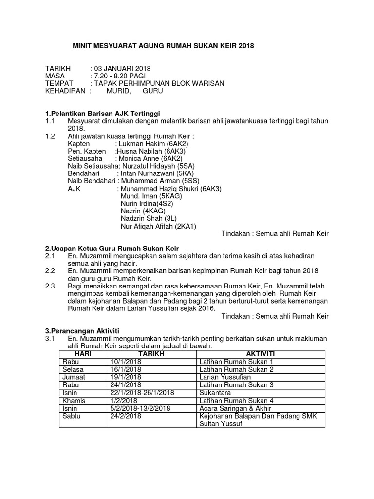 Minit Mesyuarat Agung Rumah Sukan Pdf
