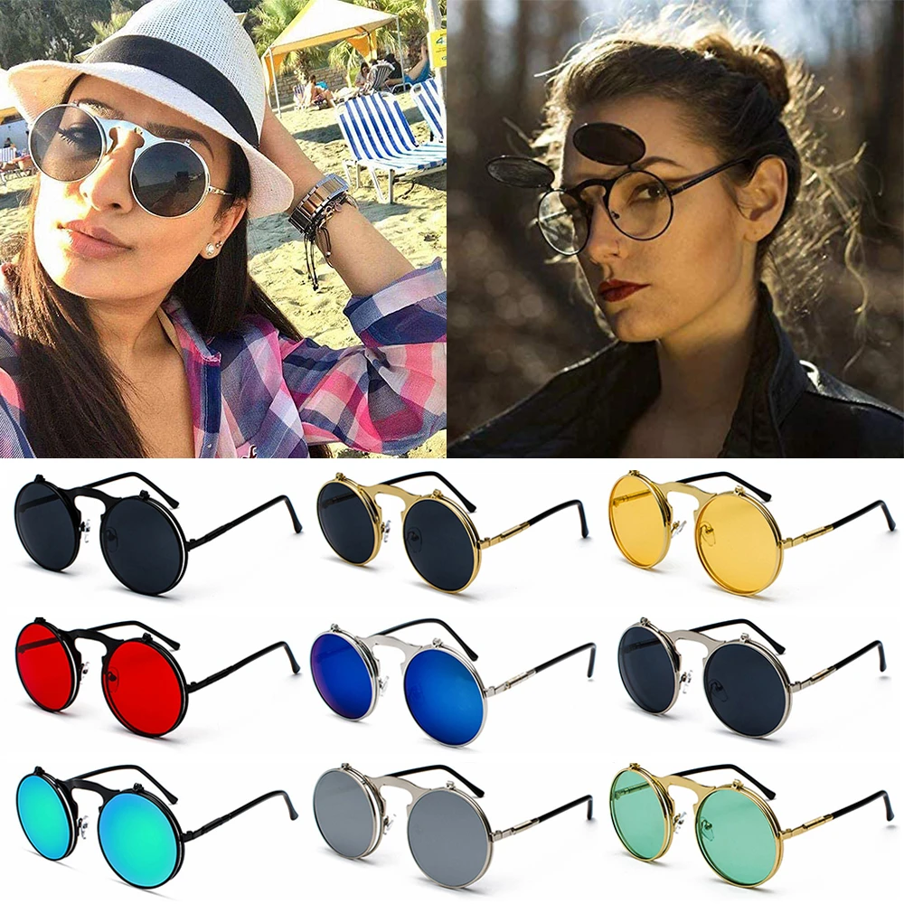 1 Pc Vintage Punk Round Flip Up Sunglasses For Men Women Steampunk Driving Sunglasses Summer Uv Protection Designer Eyewear Glasses Aliexpress